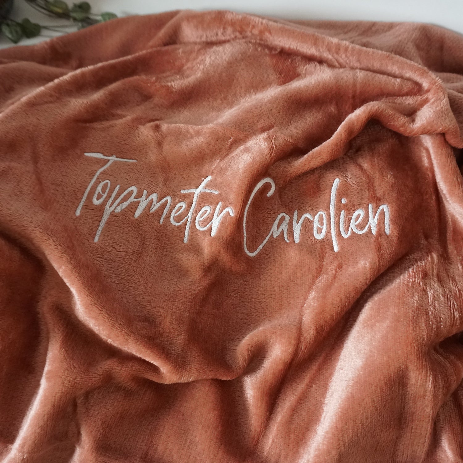 Een (geboorte)dekentje geborduurd met de naam van je kindje. We borduren dit...